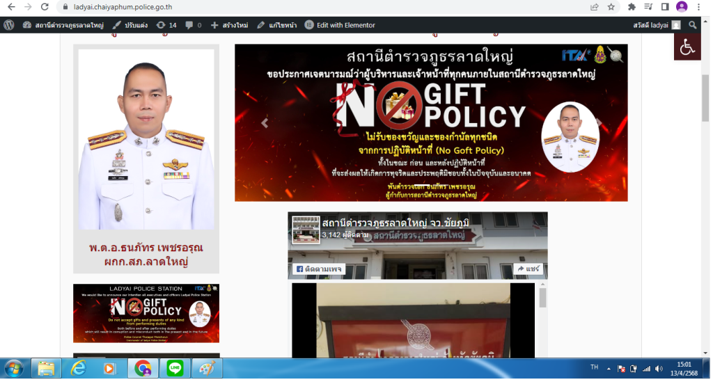 – มอบฝ่ายเทโนโลยีสารสนเทศ เผยแพร่ QR Code หรือ URL ช่องทางการเข้าตอบแบบวัดการรับรู้ของผู้มีส่วนได้ส่วนเสียภายนอก (External Integrity and Transparency Assessment: EIT) Website และ Facebook ของสถานีตำรวจ ให้แต่ละแผนกงานจัดทำป้ายประชาสัมพันธ์ QR Code หรือ URL ช่องทางการเข้าตอบแบบวัดการรับรู้ของผู้มีส่วนได้ส่วนเสียภายนอก (External Integrity and Transparency Assessment: EIT) Website และ Facebook ของสถานีตำรวจ